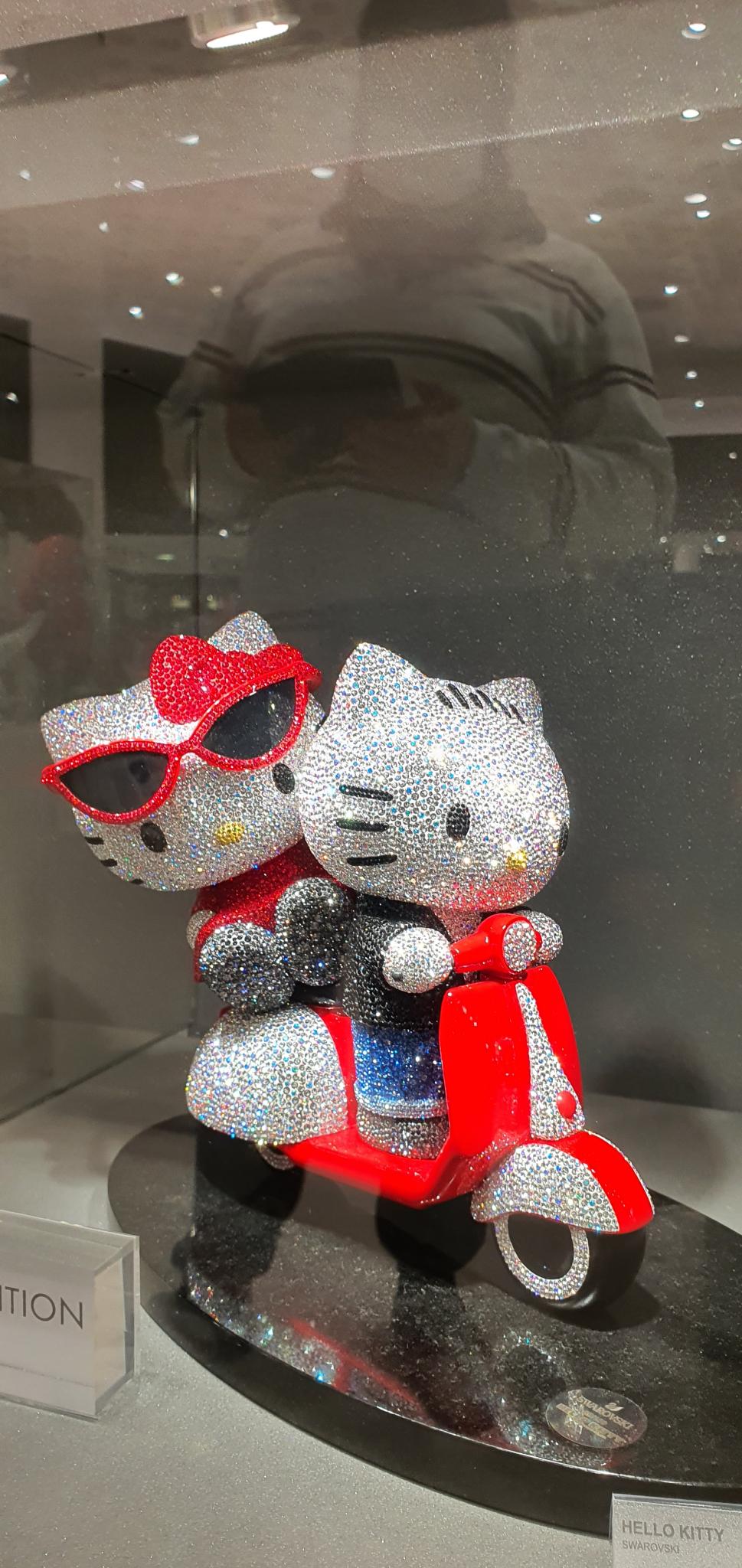 Wat mij meteen opviel waren beeldjes van Hello Kitty! In mijn tienerjaren spaarde ik talloze spullen van deze poes. Onderstaand beeldje was zelfs te koop, maar VER boven mijn budget, lol. Toch vond ik dit beeldje zo leuk, dat ik er een foto van moest maken. Ik wil niet weten hoelang ze hebben gedaan om dit beeldje te blingen!