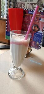 Heb je niet zoveel met milkshakes, dan is er altijd een mogelijkheid om normale soft drinks te bestellen. Wist je dat Tom’s Diner – voor zover ik kon achterhalen – de enige food hotspot in Brabant is waar je Dr. Pepper kan bestellen? Beterrrr, want mijn partner is een Dr. Pepper fan.